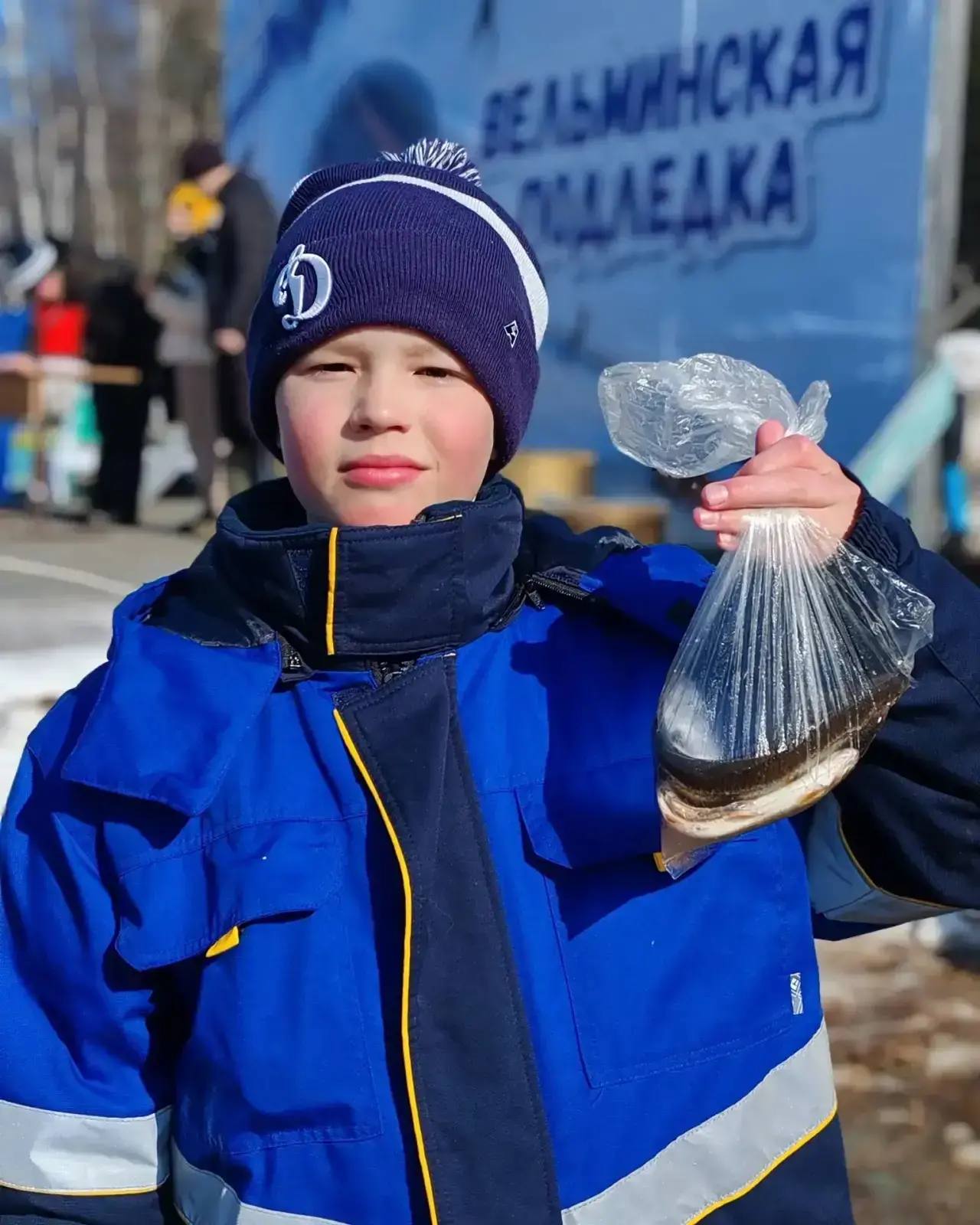 18 лет назад она впервые приехала на «Вельминскую подледку» со старшим сыном Романом — ему тогда было 11. Сегодня рядом с ней уже младший сын Матвей. И в этот солнечный день удача улыбнулась именно ему: второе место по весу улова и первое место за самую маленькую рыбку!