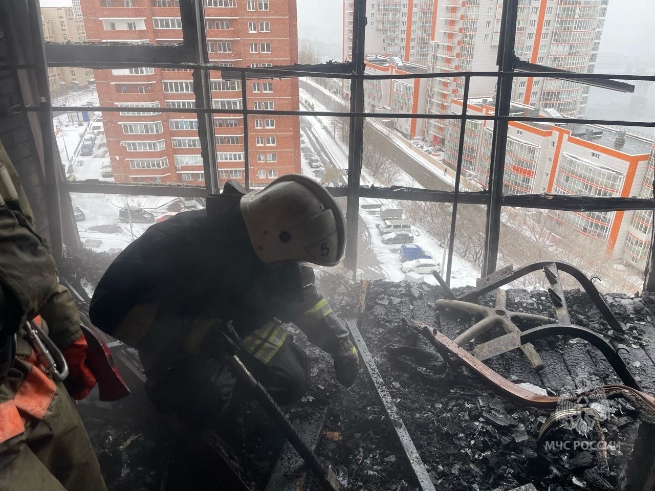 В городе Красноярске по улице Борисова произошел пожар в квартире в многоэтажном жилом доме (фото 1, 2).