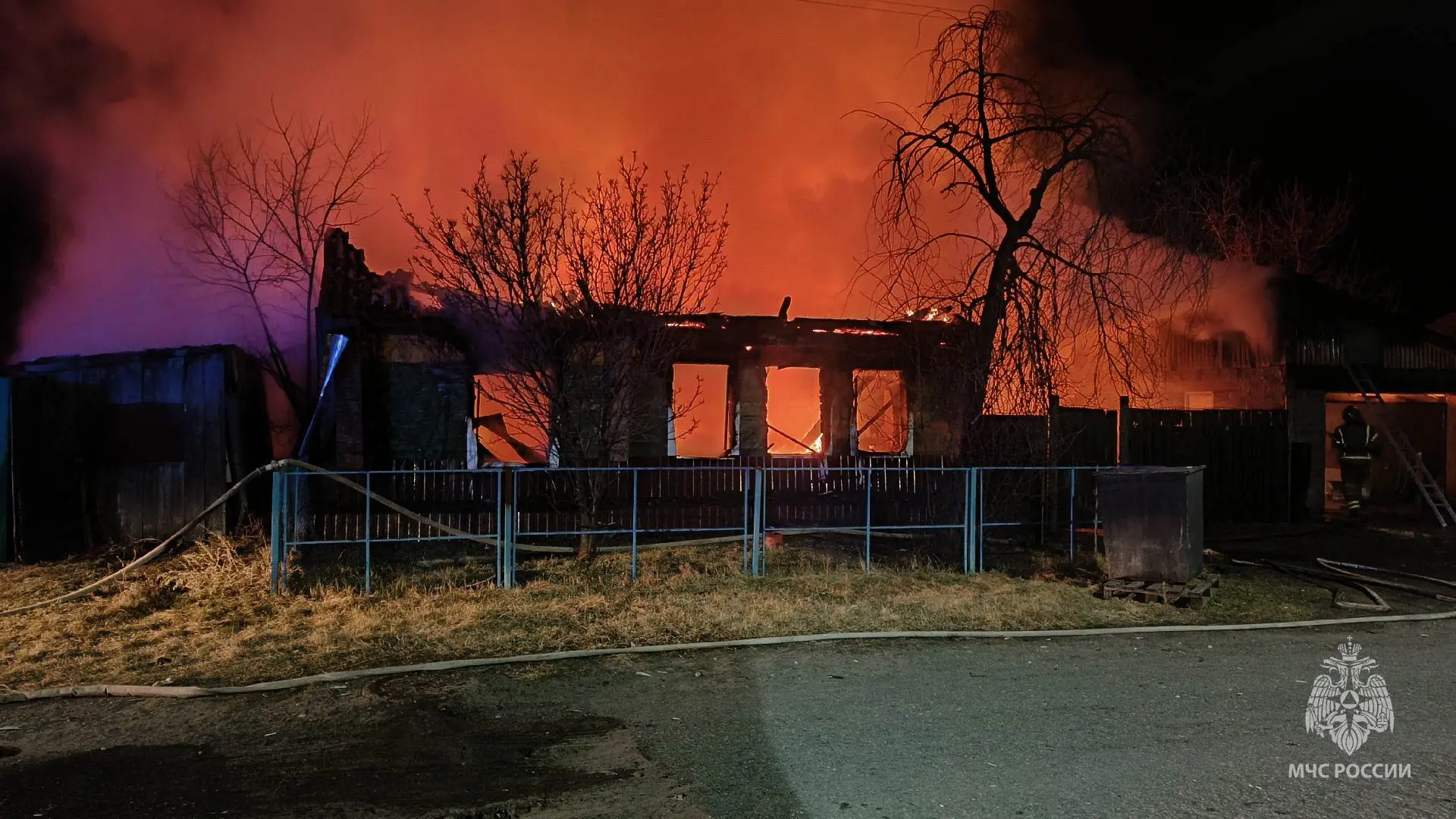 В селе Знаменка горели 2 жилых дома и хозпостройки (фото 1, 2). Сотрудники МЧС России вместе с добровольной пожарной командой ликвидировали возгорание на площади 206 м силами 10 человек и 4 единиц техники. Пострадала женщина, ее госпитализировали с ожогами. Предварительная причина пожара - нарушения при эксплуатации печи.