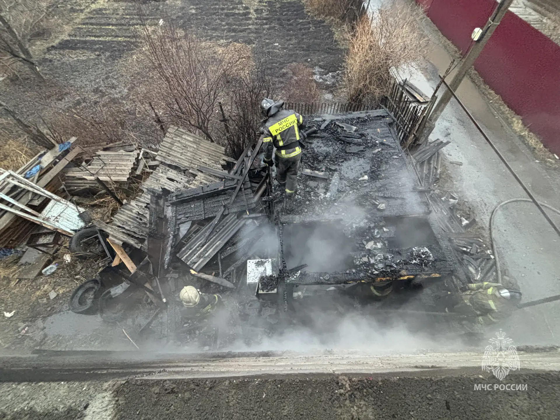Ночью 24 апреля в городе Ачинске, в садовом обществе «Юбилейное», произошел пожар в хозяйственной постройке. На место происшествия прибыли 7 сотрудников МЧС России и 2 единицы специализированной техники. В результате возгорания полностью уничтожена хозяйственная постройка, а также поврежден повреждён строящийся жилой дом на общей площади 28 квадратных метра. Предварительная причина пожара – короткое замыкание электропроводки (фото 1, 2).