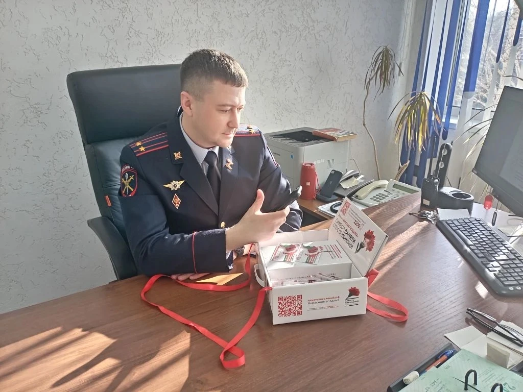 Сотрудники МО МВД России «Бородинский» присоединились ко Всероссийской акции «Георгиевская ленточка».