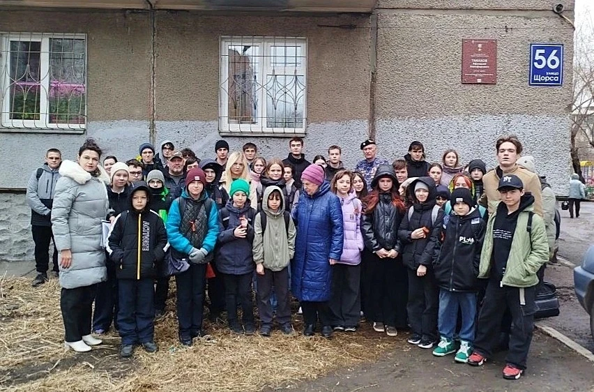 В Кировском районе Красноярска школьники и ветераны встретились у дома, где жил настоящий Герой.