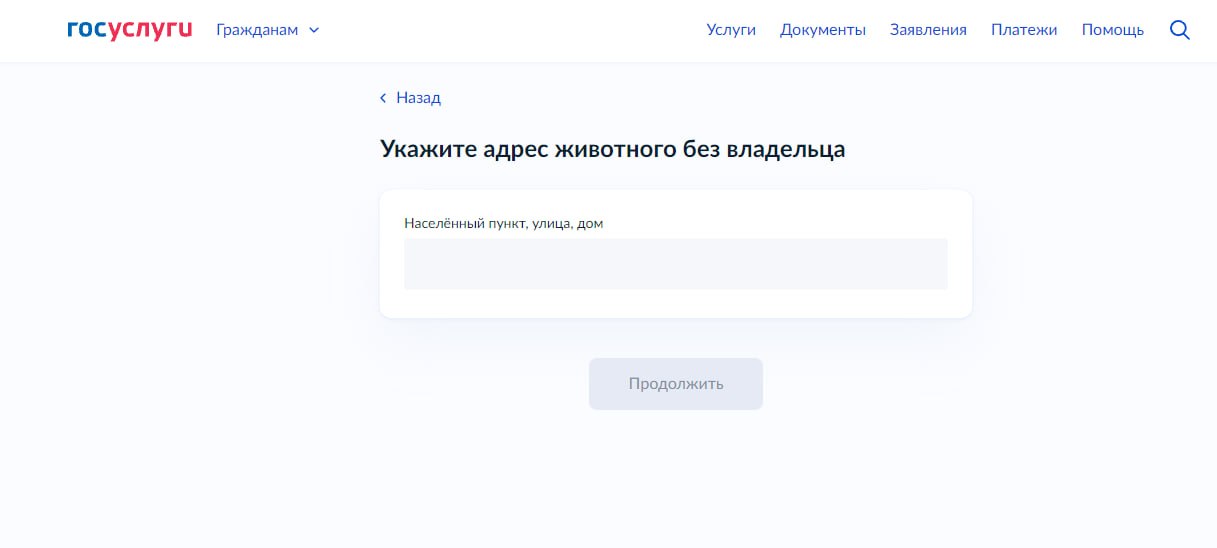 В форме нужно указать место обнаружения животного, описать его (вид, окрас, размер), отметить наличие бирки в ухе, а также указать, было ли животное агрессивным и при наличии прикрепить фото.