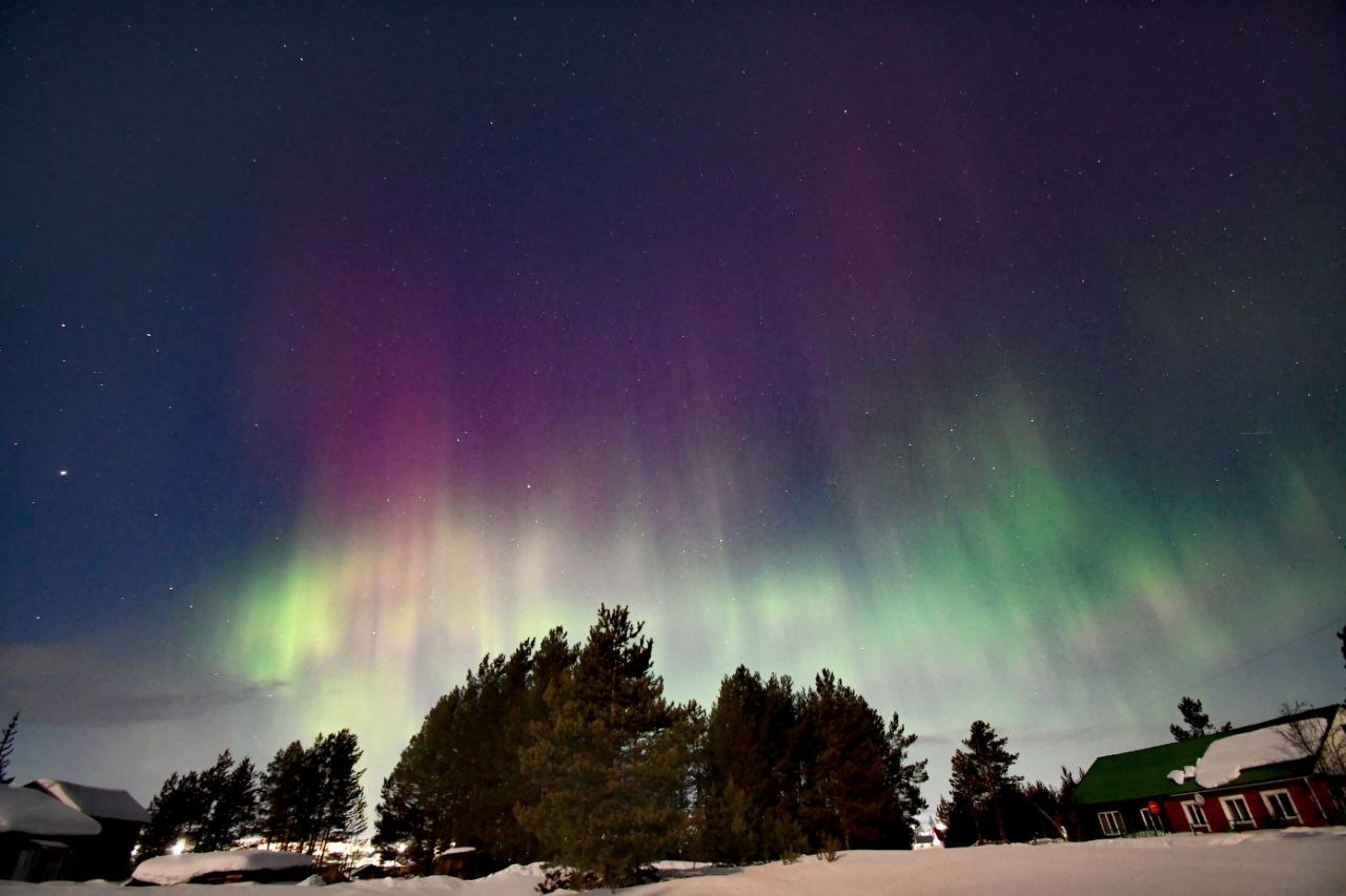 Небо на севере края озарилось ярким полярным сиянием