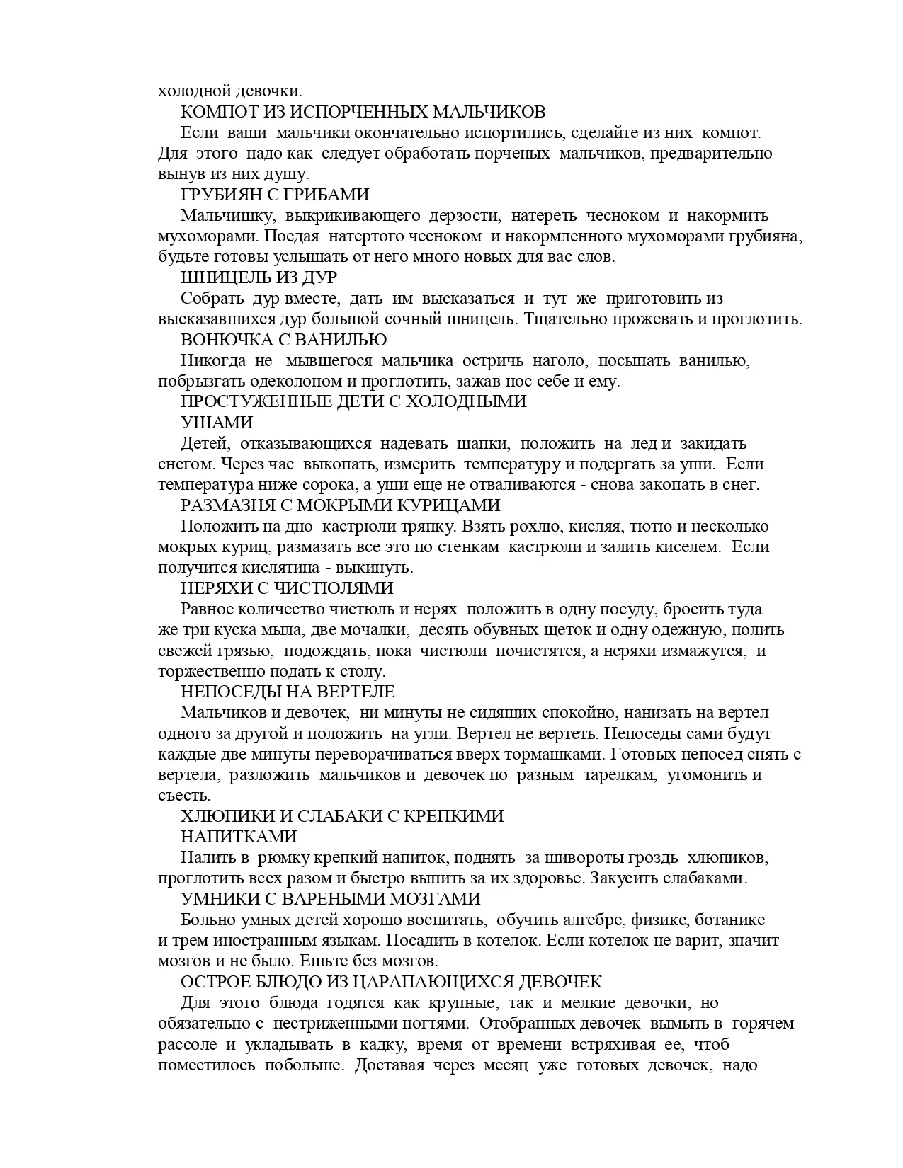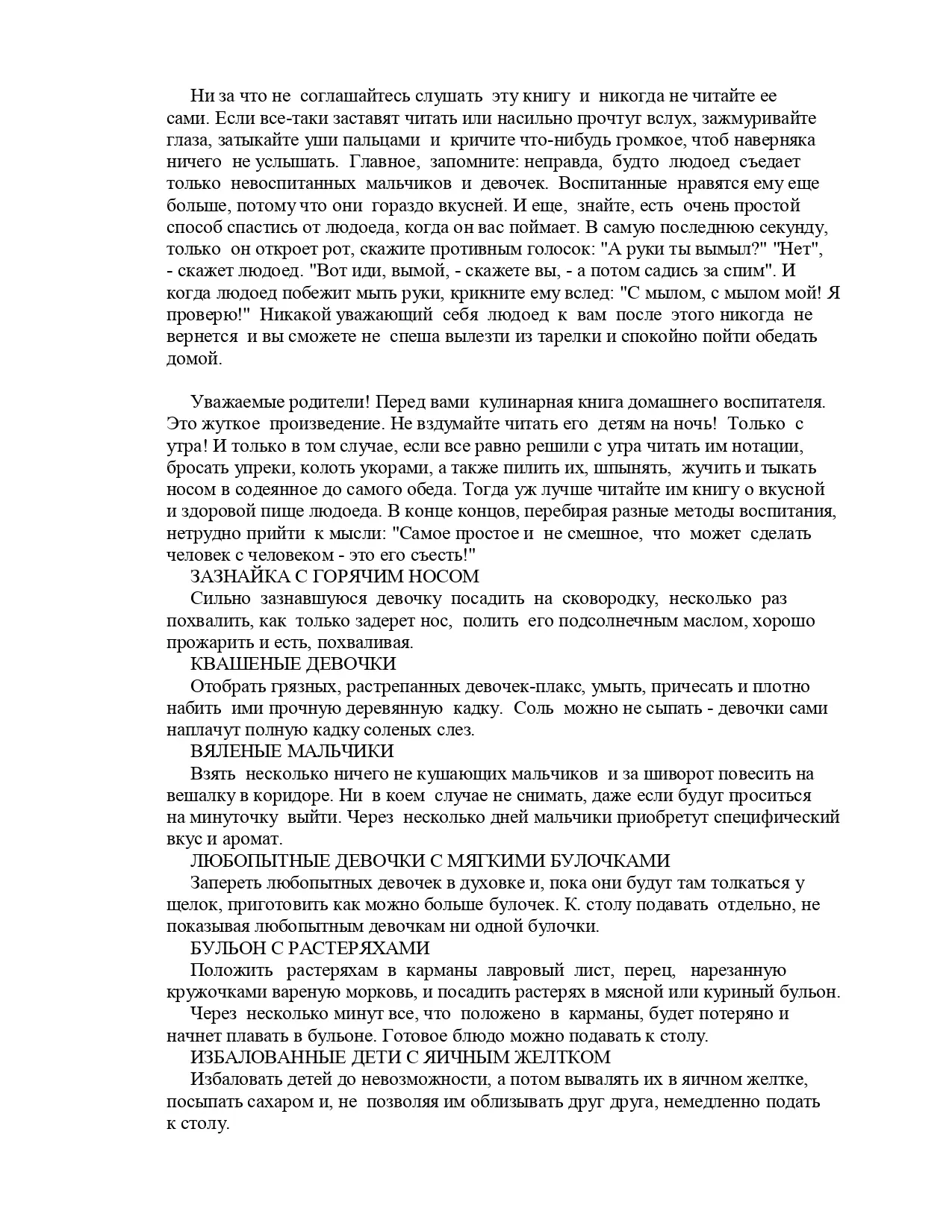 «Ученые открыли, что на свете бывают непослушные дети, которые все делают наоборот. Ученые придумали, что таким детям нужно давать не полезные, а вредные советы. Они все сделают наоборот, и получится как раз правильно».