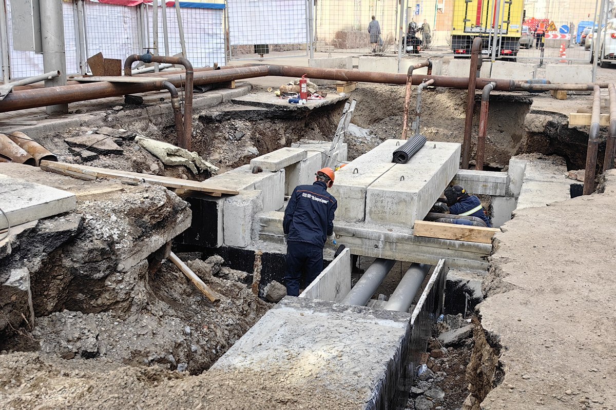 Ремонт тепловых сетей на ул. Диктатуры Пролетариата проводят одновременно с работами по благоустройству