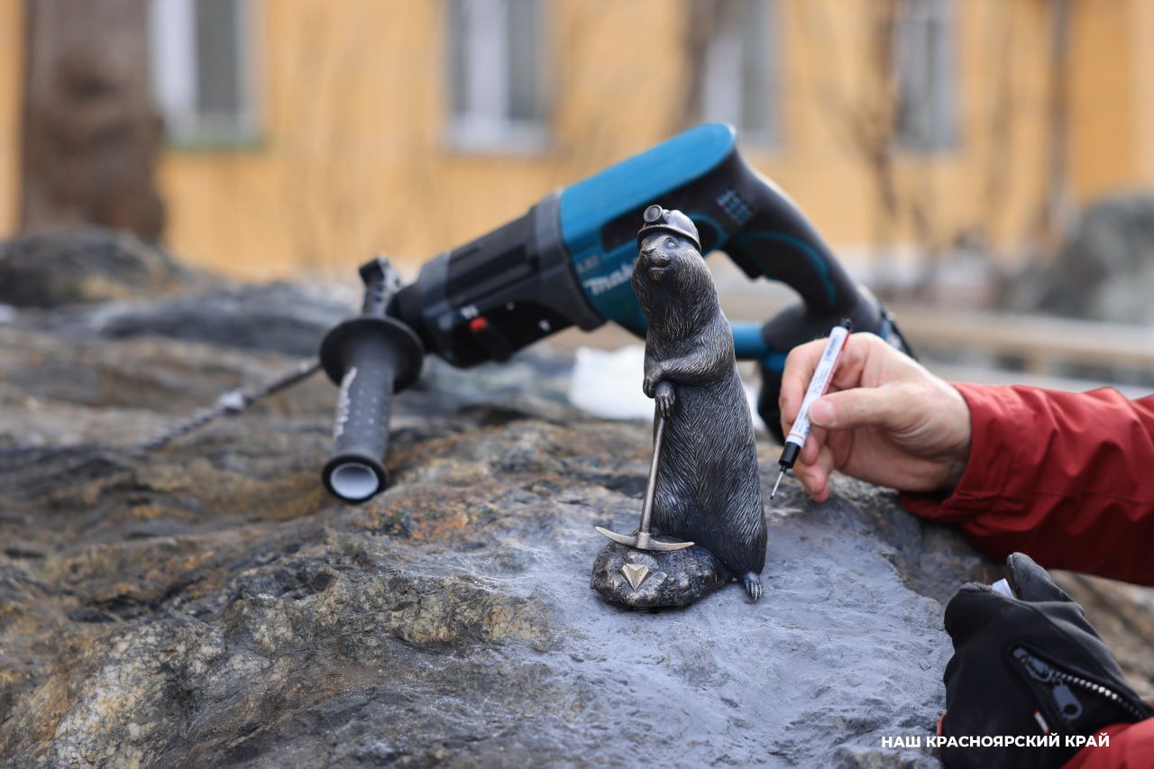 Фигурку суслика-горного инженера установили в Красноярске