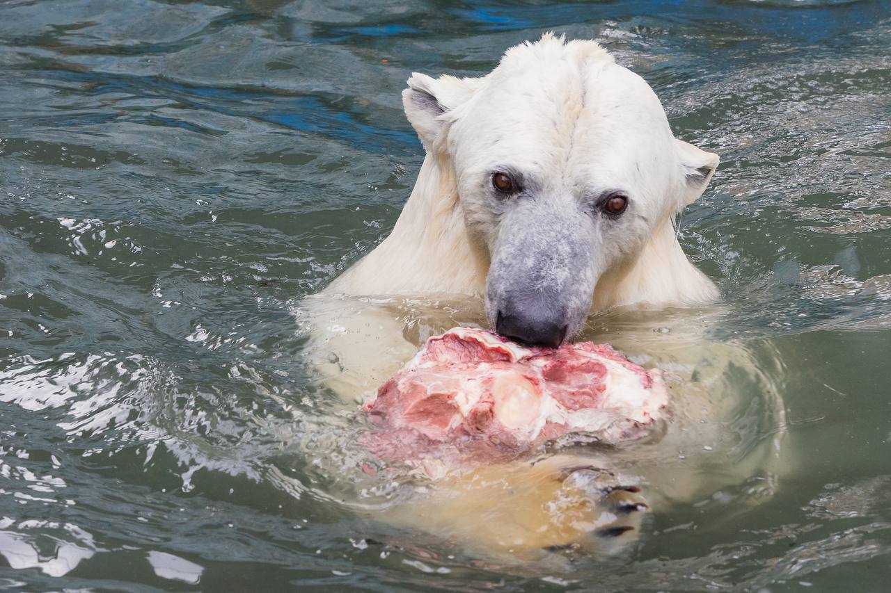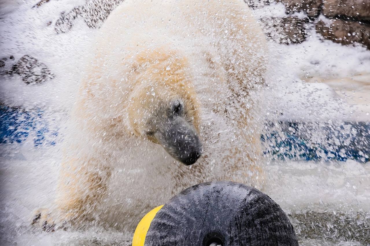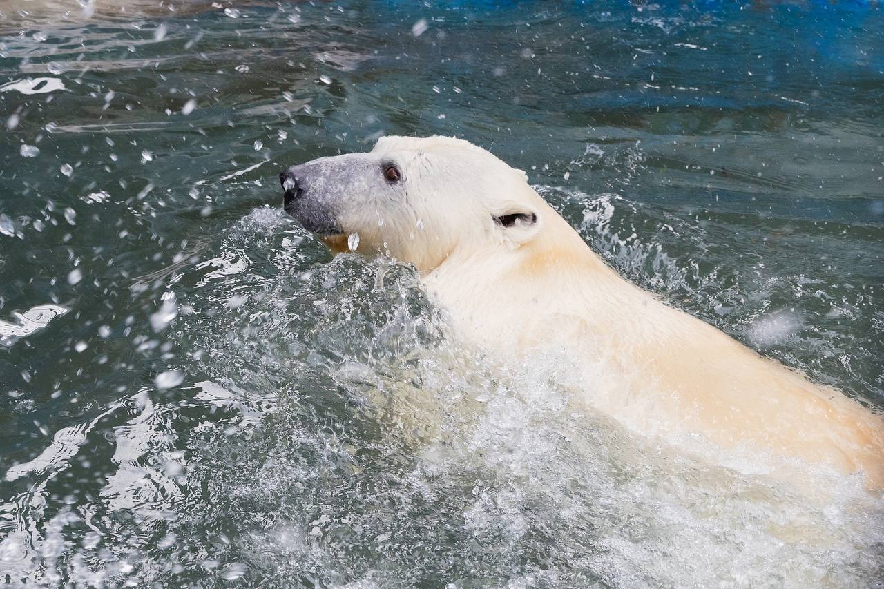 Белые медведи открыли купальный сезон в красноярском зоопарке