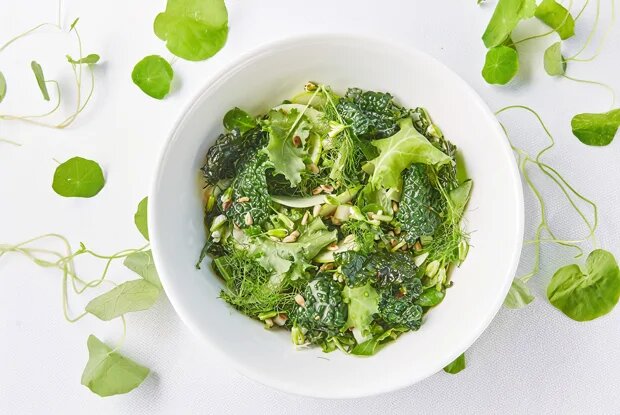 - Смесь салатных листьев — 50 г
