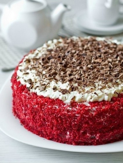 Теперь десерт абсолютно готов к подаче. Нежный и сочный, торт «Красный бархат» станет звездой вашего чаепития!