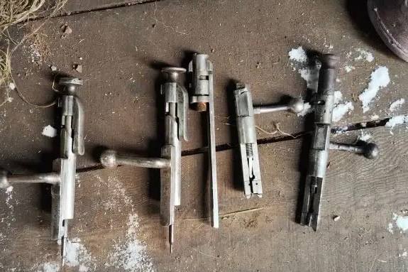 В подсобках и укромных углах нашли целый арсенал: затворы от различного оружия, 167 патронов заводского изготовления, оружие калибра 5,6 мм, а также охотничий карабин модели «ТОЗ-16». Но главным экспонатом коллекции, которую один из владельцев предпочел оставить без документов, стал охотничий карабин «Мосина» — настоящий раритет, не выпускавшийся после 1945 г.