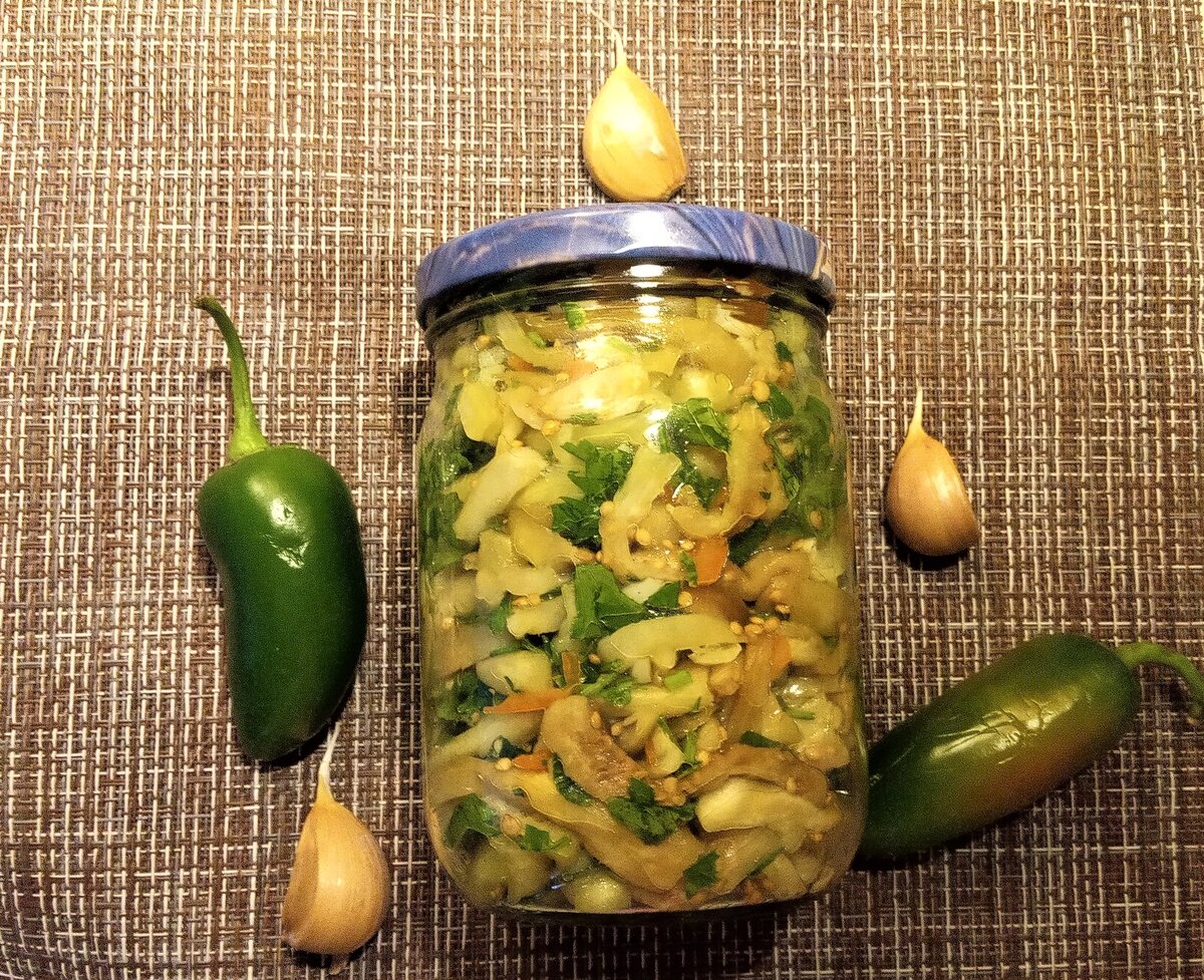После этого переложить баклажаны в банки, проткнуть смесь в нескольких местах, чтобы убрать лишний воздух, и залить оставшимся маслом. Закрыть банки крышками и убрать в темное, прохладное место. Спустя неделю закуска будет полностью готова к употреблению.