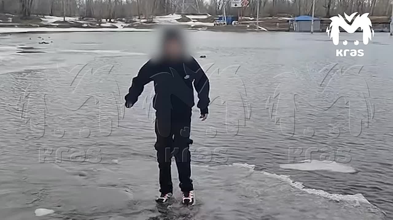 Дети скачут на тонких льдинах ради лайков на Абаканской протоке.