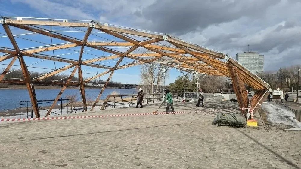 Там делают новый навес беседки. На очереди сцена и амфитеатр. У него появится крыша, чтобы зрителям на мероприятиях было комфортно в любую погоду.