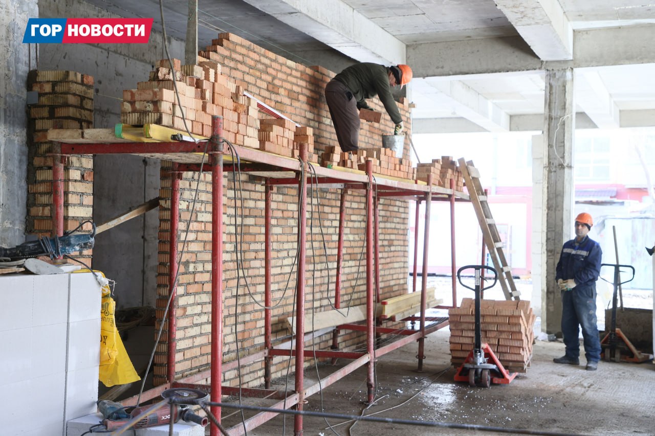 Сейчас здание готово на 42 %. Внутри ведутся сварочные работы, снимают опалубку стен второго этажа и делают перегородки. Затем приступят к устройству кровли.