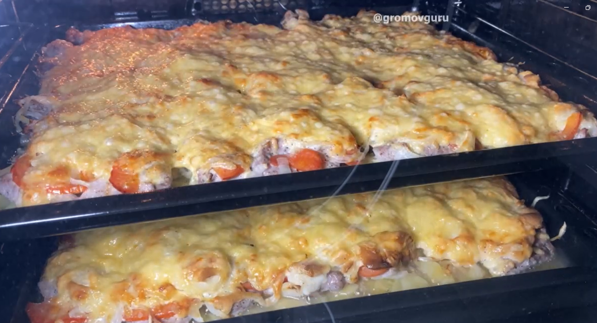 Форму для запекания смазывают маслом. Сначала укладывают картошку, затем равномерно распределяют маринованное мясо, сверху — кольца лука, помидоры и щедрую порцию домашнего майонеза. Посыпают всё натёртым сыром и ставят в разогретую до 180°C духовку на 45 минут. Во время запекания кухня наполняется аппетитным ароматом, который невозможно игнорировать. Итог — нежное мясо, пропитанная соком картошка и румяная корочка сверху.