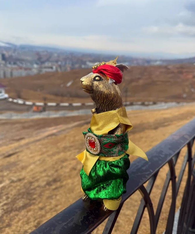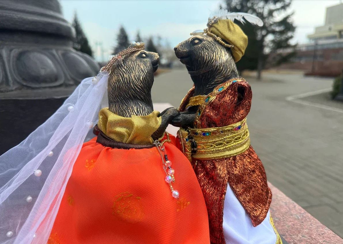 Бронзовые суслики в Красноярске примерили индийские наряды