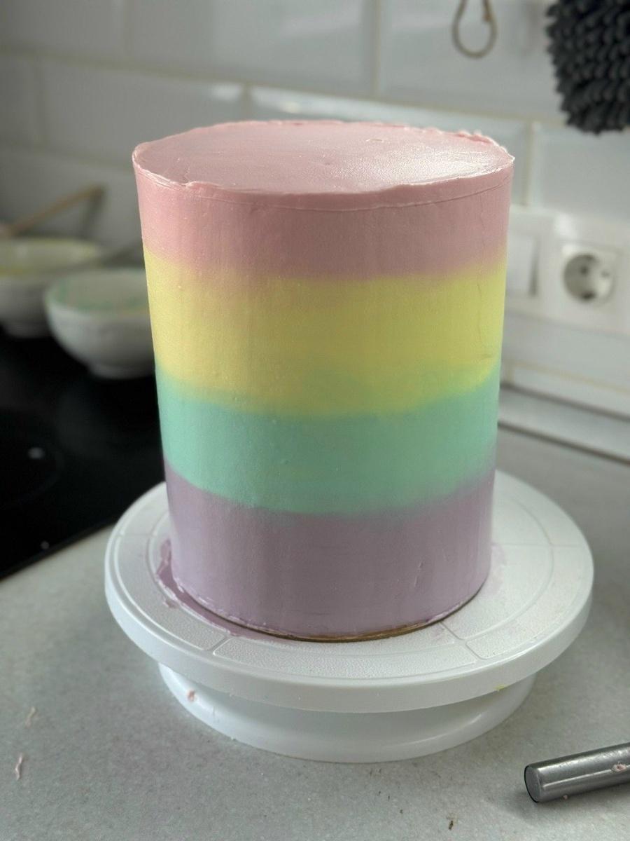 Покрытый чизом на масле, торт имеет радужные коржи с маскарпоне внутри. Этот выбор ингредиентов делает десерт не только красивым, но и вкусным. Тем не менее, мягкая начинка и масляное покрытие требуют внимательного обращения, особенно на длинных дистанциях.