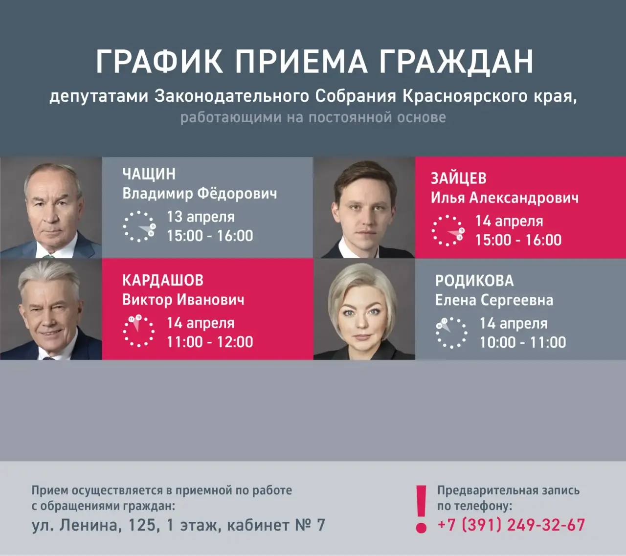График приема граждан на первую половину апреля