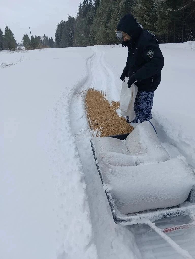 Специалисты краевой дирекции по особо охраняемым природным территориям подкармливают копытных.
