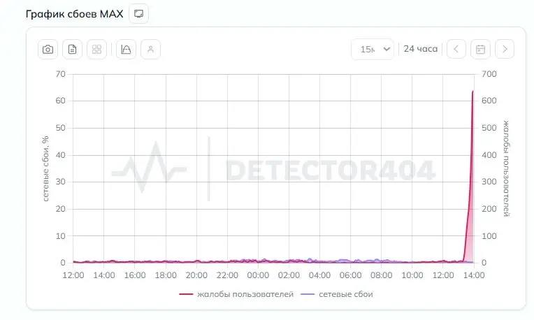 По данным сервиса Downdetector, который отслеживает работу популярных онлайн-платформ, за последние сутки на сбои пожаловались 1,4 тысячи человек, а за последний час — 1 тысяча. Сервис оценивает это количество как «много».