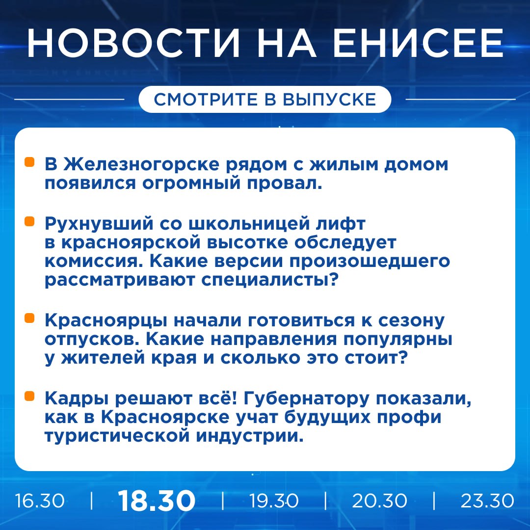 Подробнее об этих и других новостях расскажем на «Енисее»