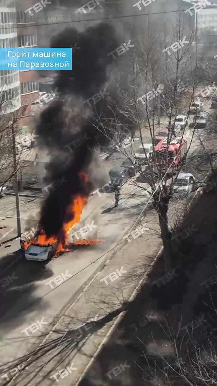 Машина горит на Паровозной