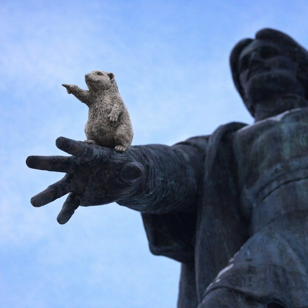 ...С 1 апреля! Суслики в Красноярске добрались до многих мест, но до памятника основателю города еще не добежали. Мэрия города, обратите внимание, идею дарим бесплатно!