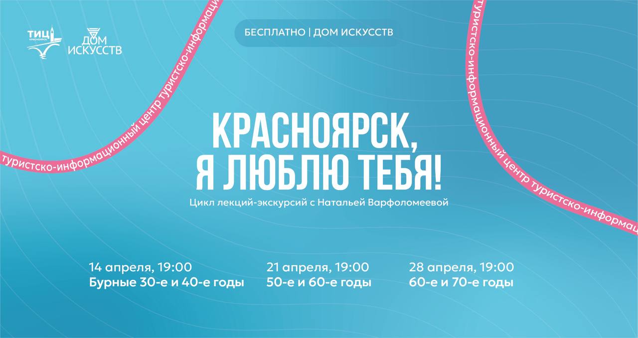 ТИЦ Красноярска и Дом Искусств запускают проект «Красноярск, я люблю тебя». Вместе с экскурсоводом Натальей Варфоломеевой вас ждет погружение в историю города на трёх встречах: