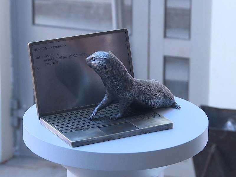 Напомним, фигурку, которая стала уже 19-й по счёту, установили на проспекте Мира, 45а. Она посвящена всем IT-специалистам. Любопытный зверёк пишет уникальный программный код. Если приглядеться, в нём можно увидеть надпись: «Привет, мир!»