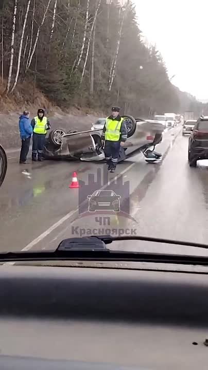 Audi перевернулась на трассе Красноярск — Дивногорск