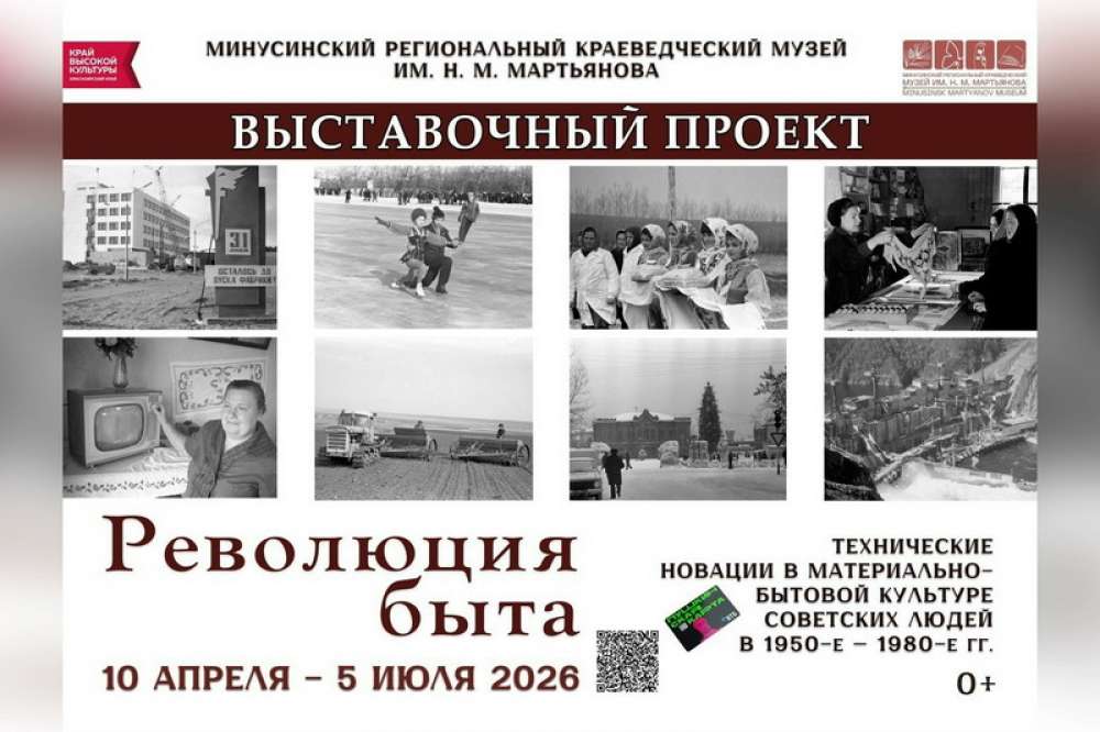 Краеведческий музей имени Н.М. Мартьянова 10 апреля приглашает гостей и жителей Минусинска на открытие выставки «Революция быта». Это новый проект, посвященный трансформации материально-бытовой культуры и повседневной жизни советских граждан в период 1950-х – 1980-х годов.