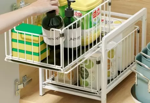Эта полка идеально подходит для кухни и ванной. Забудьте о мусоре под раковиной — на ее месте вы увидите аккуратно организованные уровни с необходимыми предметами. Она: