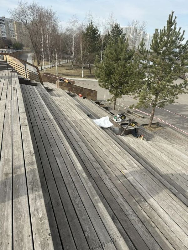 Подрядчик огородил территорию, скоро начнут менять деревянное покрытие.
