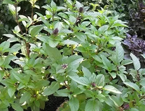 - Комнатный фиолетовый базилик: Невысокий и компактный, этот сорт отличается выраженной горчинкой. Его фиолетовые листья отлично вписываются в любой интерьер, а сбор первых листьев возможен через 2-2,5 месяца.