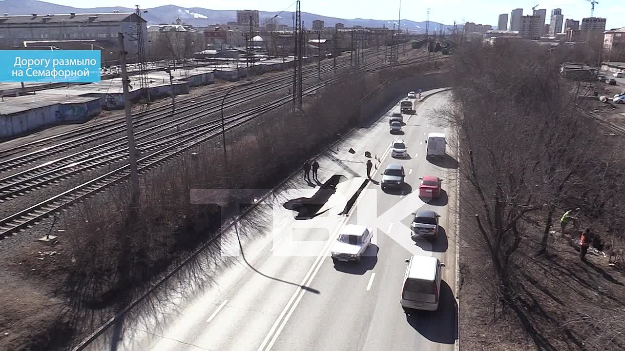 Размытый участок дороги оградят бетонными блоками. Водителей просят соблюдать скоростной режим на отрезке Семафорной и быть особенно внимательными в ночное время.