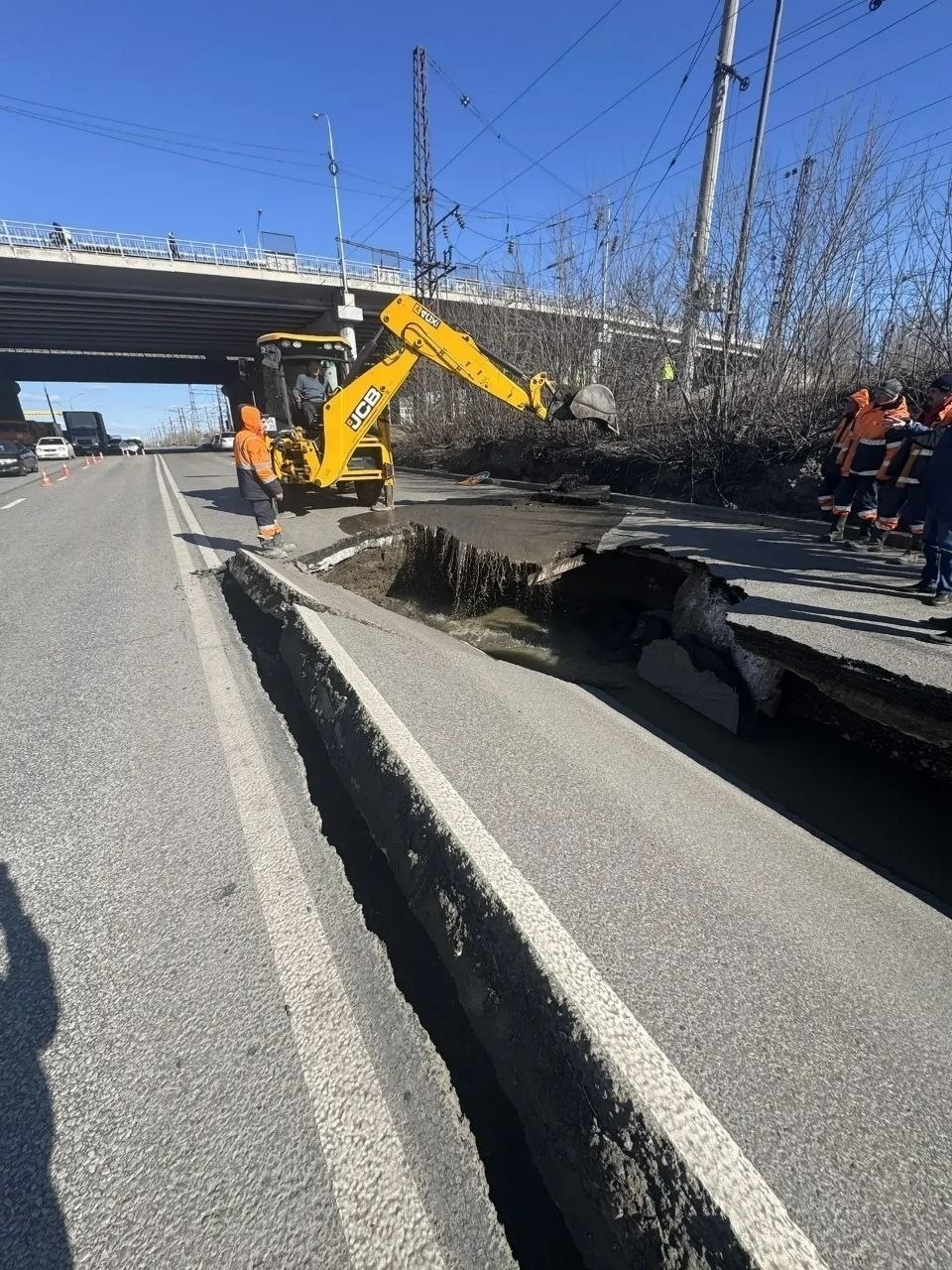 В результате провалился участок дороги. Бригады и техника уже работают, чтобы добраться до места порыва, сообщает глава Красноярска Сергей Верещагин.
