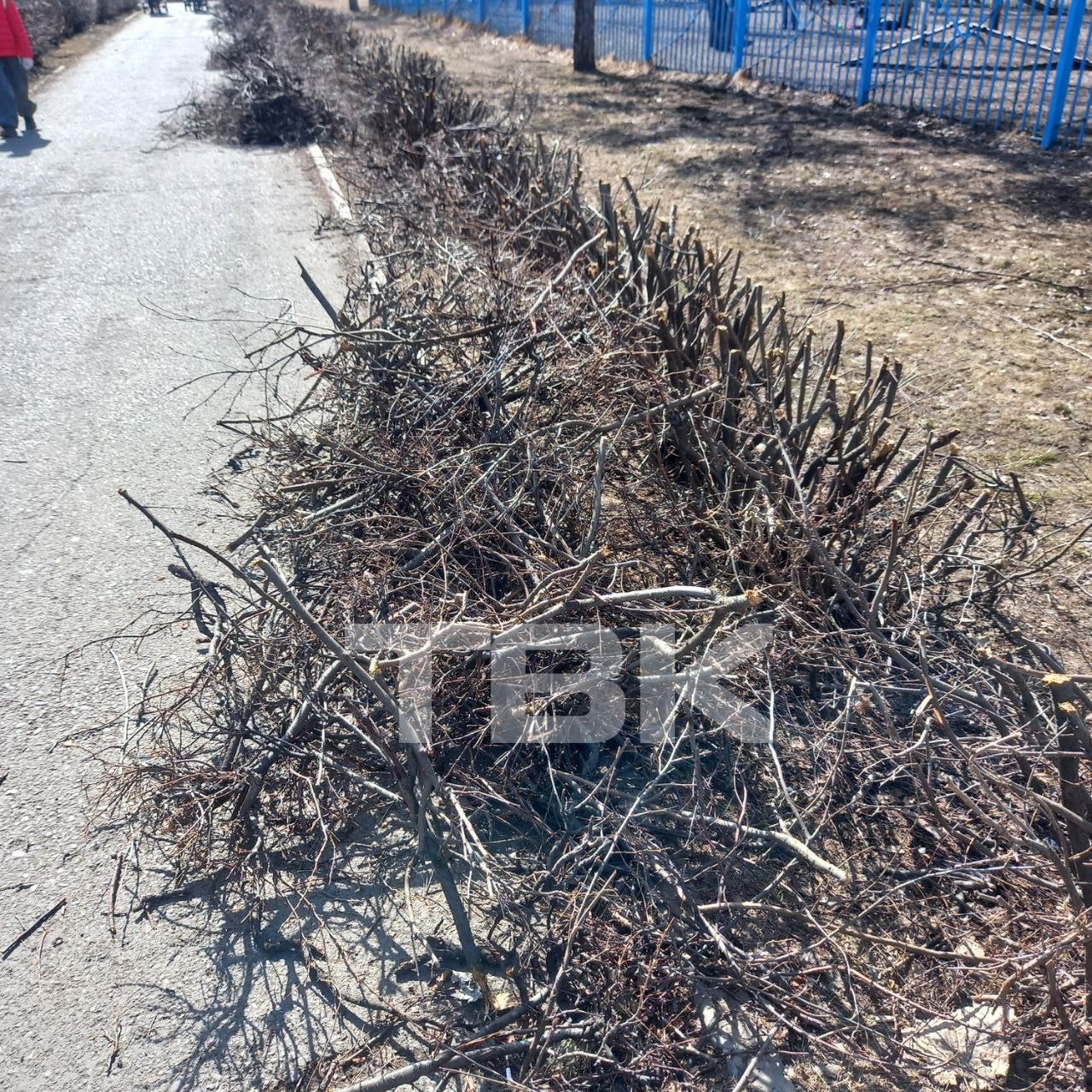 «Непонятно для чего очень низко обрезают живую изгородь, высоту живой изгороди понижают в 2 раза. Вместо формирующей и санитарной обрезки ведется варварская обрезка по высоте. Это просто уничтожение красивой живой изгороди, которой теперь надо отрастать не один год», – считает автор фото.