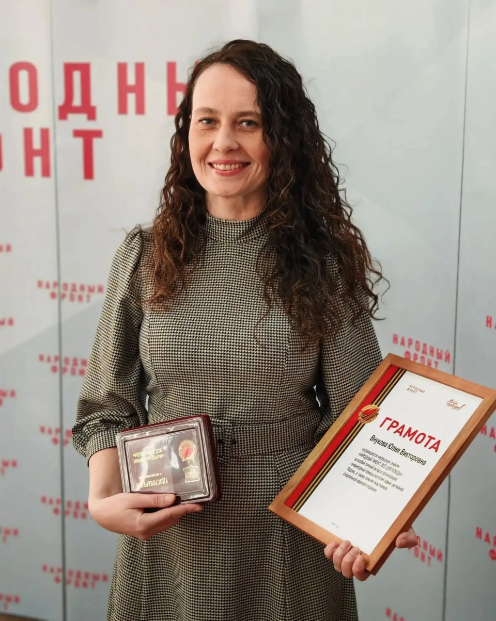 Юлия Внукова стала первым журналистом в Красноярском крае, которого Народный фронт удостоил этой награды. По инициативе президента Владимира Путина ее вручают волонтёрам, медикам и предпринимателям за помощь фронту. А теперь в этом списке и журналисты из регионов.