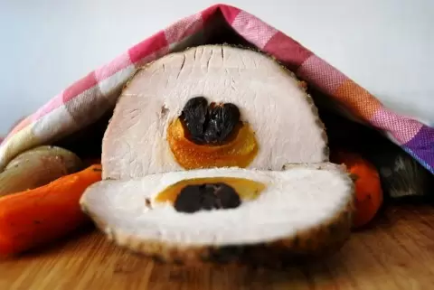 С приходом праздничной суеты иногда достаточно одной ясной идеи — как из обычного куска мяса получить сочное блюдо с неожиданной начинкой. Здесь корейка становится хлебным куском новой трапезы: внутри ее живет сладко-острый микс из чернослива и кураги, а сверху запеченная карамельная корочка напоминает о домашнем тепле.