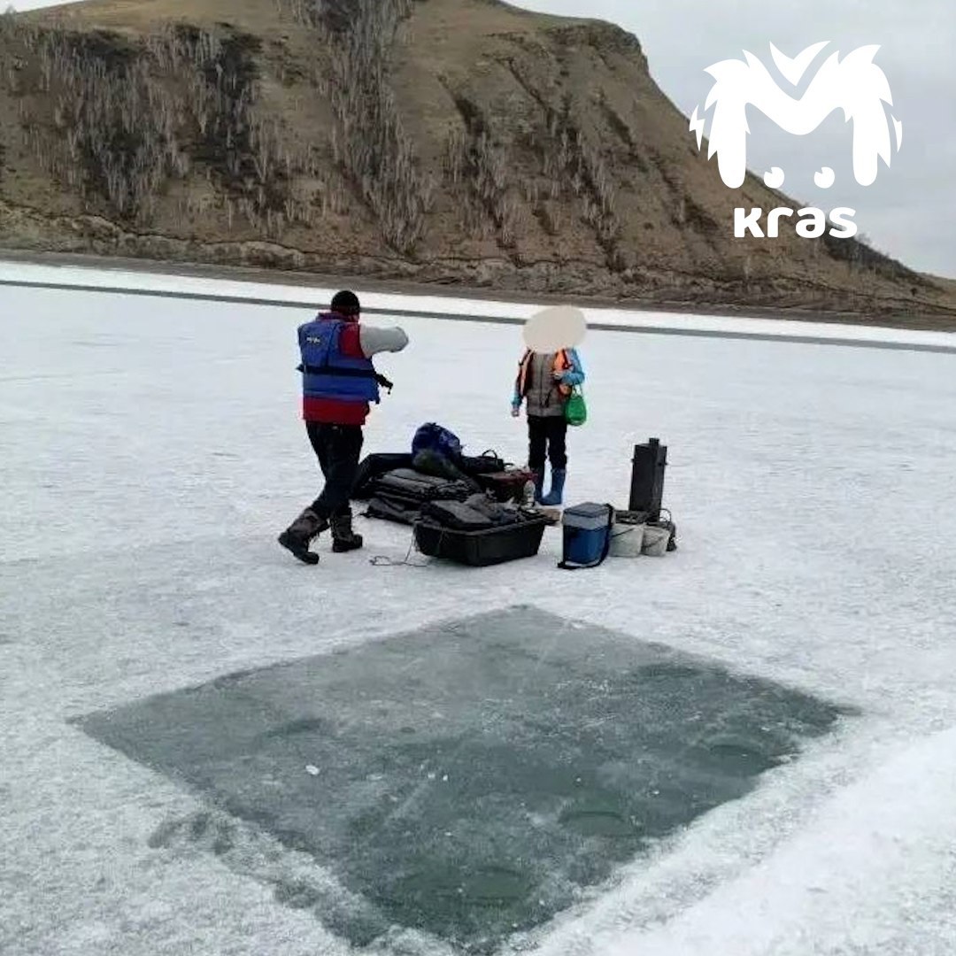 Четыре рыбака чуть не уплыли на льдине по Красноярскому водохранилищу.