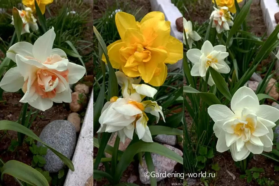Не спешите обрывать листья: пока они еще зелёные, продолжают фотосинтезировать, что критически важно для здоровья луковиц. Поливайте нарциссы, особенно в сухую погоду, пока листья полностью не засохнут. Пожелтевшие и подсохшие листья могут быть осторожно удалены. Если дизайн клумбы позволяет, лучше оставить листья оказывать влияние на луковицу еще 6-8 недель.