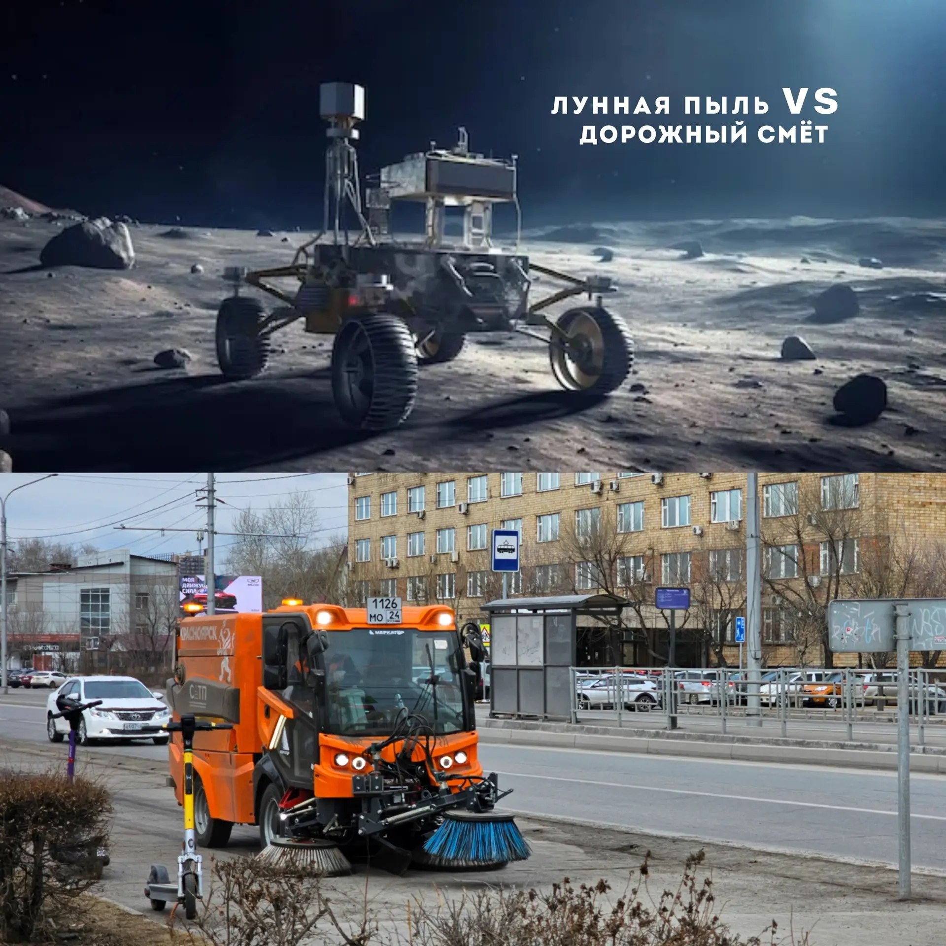 Главная проблема на Луне – это пыль-реголит. Из-за отсутствия ветра пылинки не трудтся друг о дружку, а остаются острыми, как осколки стекла. Землянам повезло больше: гравитация прибивает пыль к земле, а вода и ветер делают песчинки гладкими. Дорожникам остаётся только собрать её специальными пылесосами.
