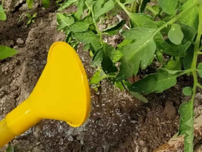 Первая подкормка томатов должна быть с использованием органического удобрения, в составе которого есть азот, спустя две недели после посадки. Это помогает развить крепкие стебли и густую листву. Затем через 10 дней следует добавить монофосфат калия, способствующий формированию корней и общей гармонии куста.