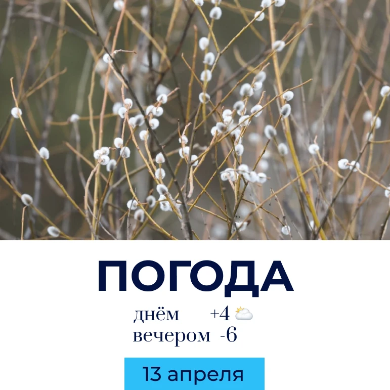 Погода на 13 апреляНочью 0°CДнем +2°CВетер от 8 до 13 м/сЧитать нас можно и в MAX