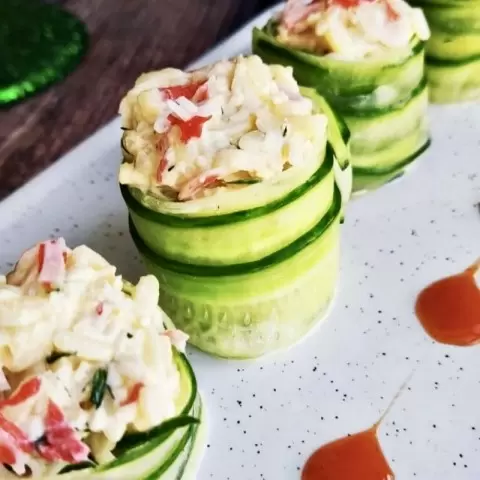 Плавно и аккуратно огурцы сворачиваются в рулет, закрепляются и подаются на подносе. В каждом таком рулетике угадывается привычная комбинация: нежный рис, хрустящие огурцы и сливочная заправка, соединенные простотой приготовления.