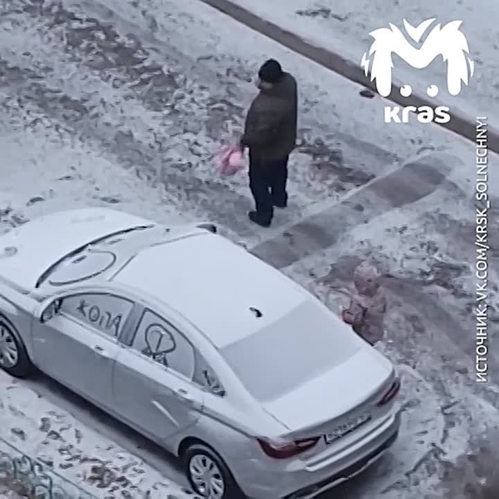 По словам автора видео, папа гулял с ребёнком в Солнечном и разрисовывал припаркованные машины всякими гадостями. Кого-то в соцсетях такой семейный досуг повеселил, другим показалось, что этот навык в жизни малышу не очень пригодится.