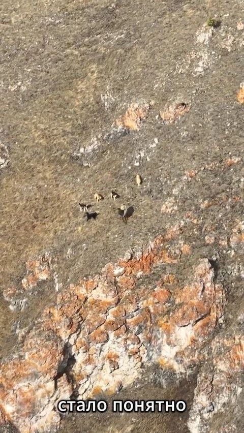 Тогда фотограф направил дрон на свору. Собаки испугались незнакомого жужжания и убежали, а олень остался жевать траву на склоне.