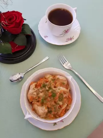 Блюдо готово! Разложите курицу с овощами по тарелкам, посыпьте свежим укропом и наслаждайтесь вкусом домашнего уюта.