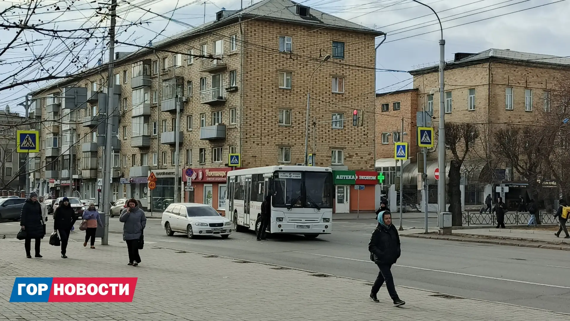 ДТП произошло на пересечении улиц Кирова и Карла Маркса. На кадре от подписчика «Горновостей» видно, что автобус маршрута № 5 и легковой «Ниссан» не смогли разъехаться в повороте.